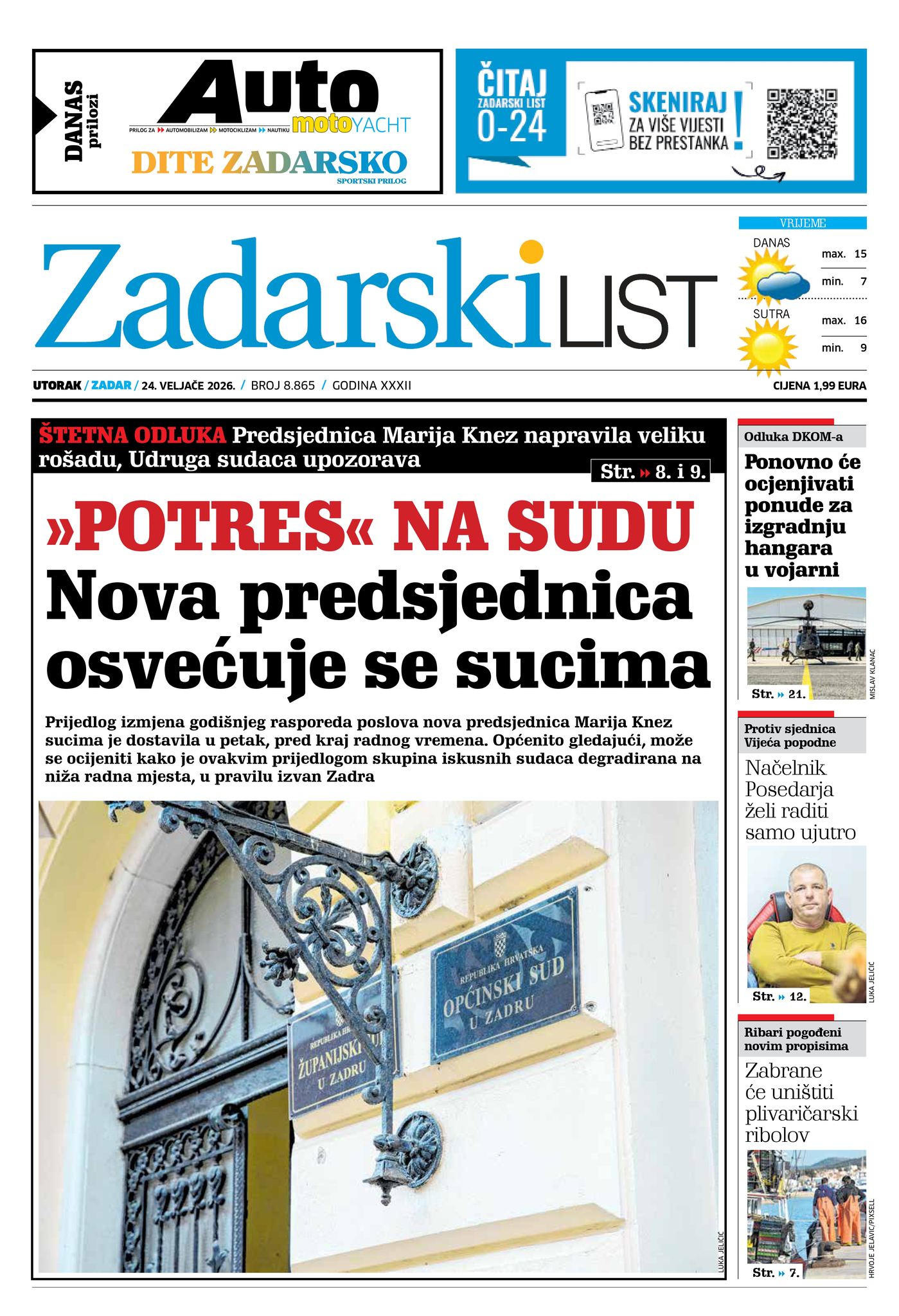 PREGLED DANA Početak tjedna u znaku potresa na Općinskom sudu u Zadru, tunela kroz Bibinje i smrti najstarije zadarske redovnice