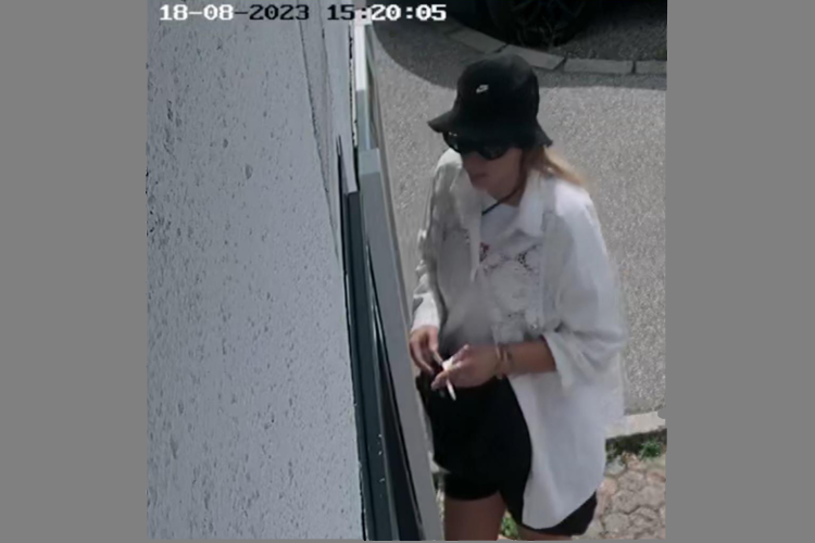 Ženska osoba bila je odjevena u bijelu majicu, bijelu dužu košulju, crne kratke hlače, na glavi je nosila crni šešir te je bila obuvena u crne tenisice.
