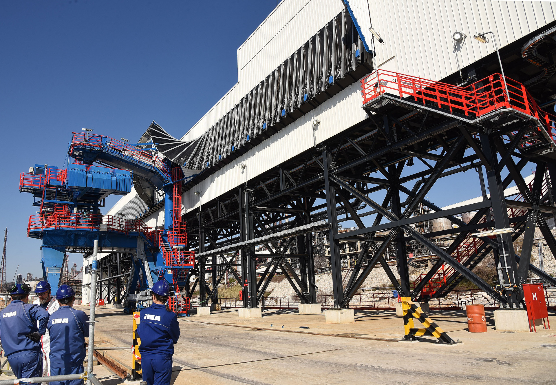 Na samom početku obilaska jasno je da je riječ o golemom projektu. DCU je posve izmijenio izgled riječke rafinerije, a zajedno s transportnom trakom, silosom za skladištenje petrol-koksa i lukom za ukrcaj na brodove čini gotovo kilometar dug kompleks kojemu su u međuvremenu prilagođena i ostala postrojenja rafinerije, u što je Ina, uz druge projekte, poput pogona za izdvajanje propilena, u zadnjih desetak godina uložila ukupno milijardu i pol eura.