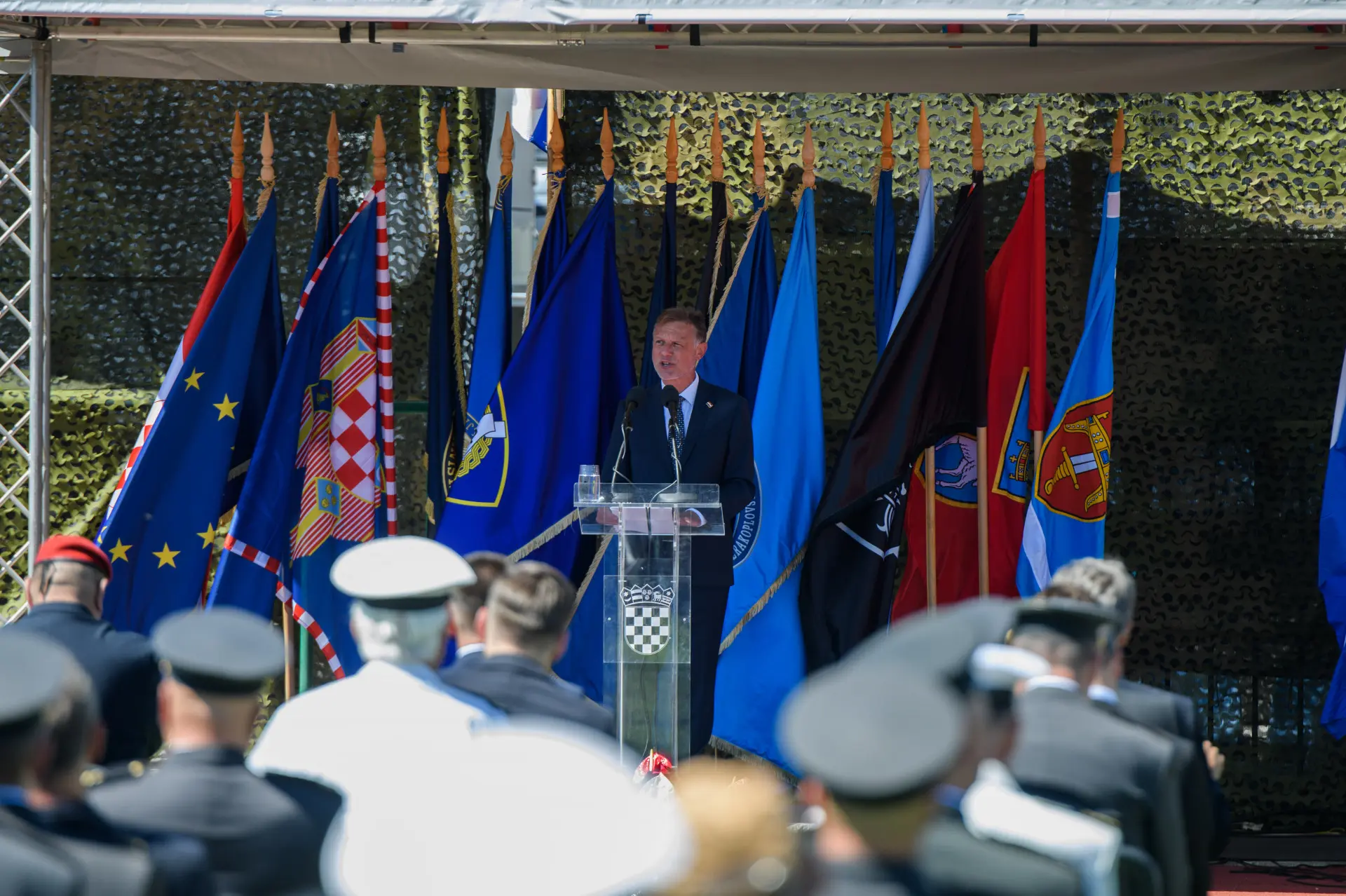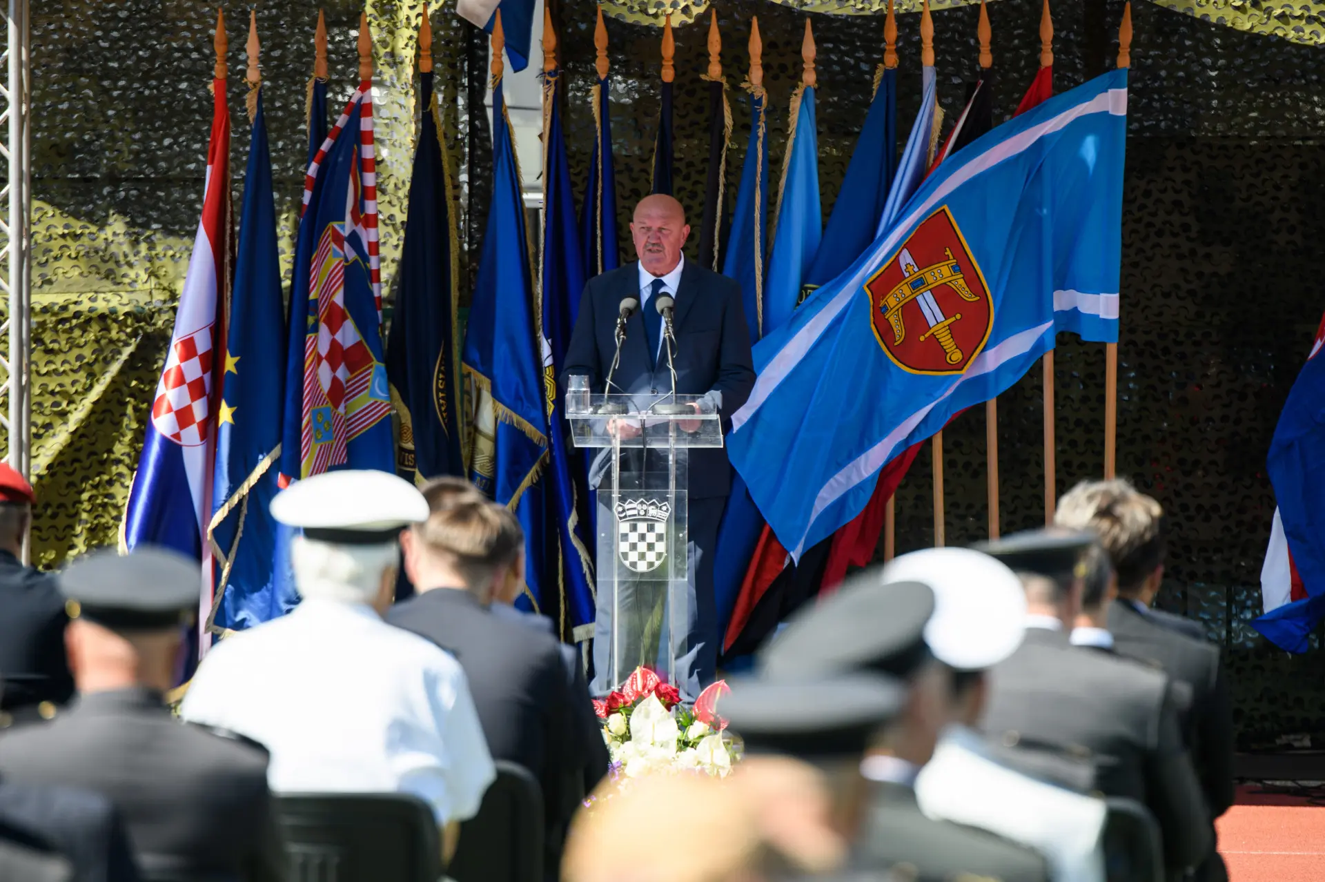 Umjesto predsjednika Republike Zorana Milanovića govor je održao njegov izaslanik umirovljeni general pukovnik Marijan Mareković, ratni zapovjednik iz Oluje, koji je naglasio odlučnost u očuvanju mira stabilnosti i sigurnost hrvatskih građana.