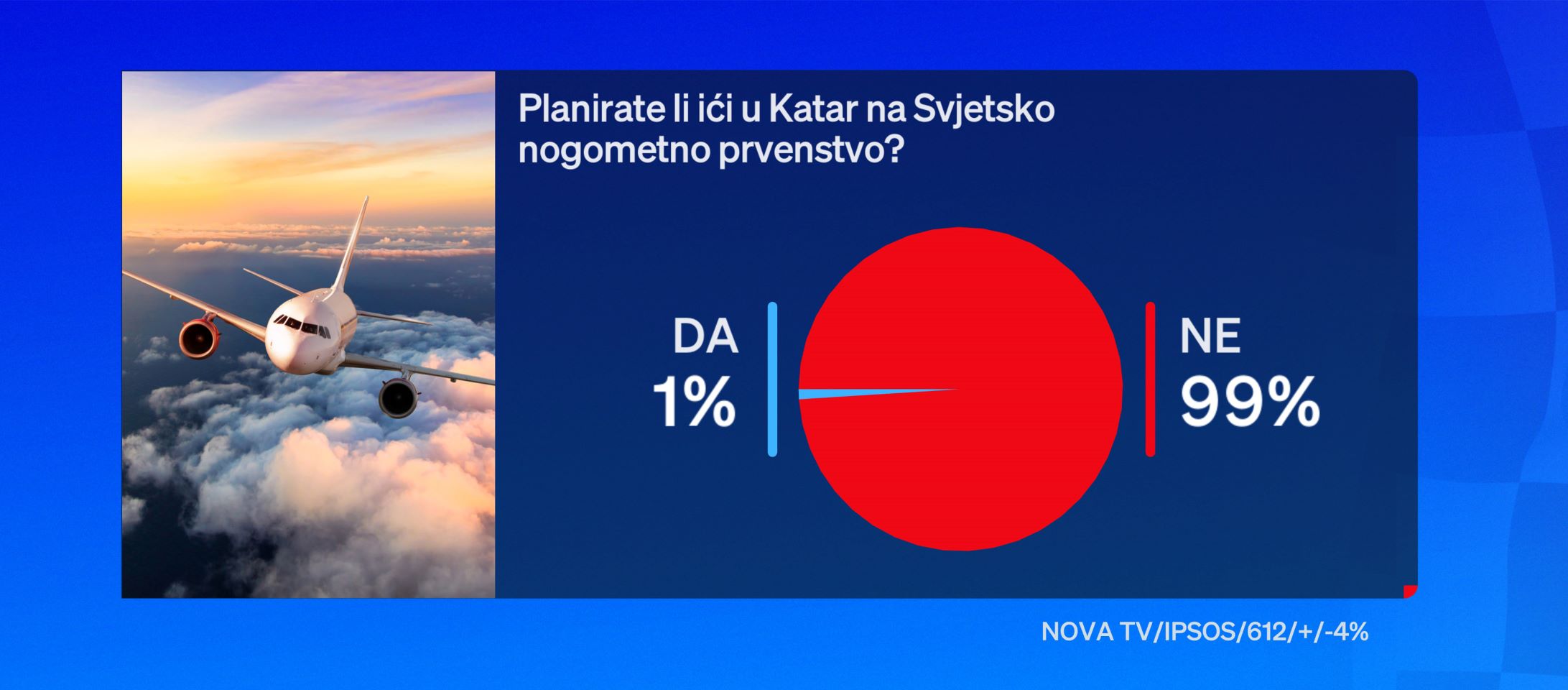 Našim navijačima Katar je ipak predaleko za bodrenje Vatrenih. Tako tek jedan posto ispitanika planira putovati u Katar, dok 99 posto to ne planira.