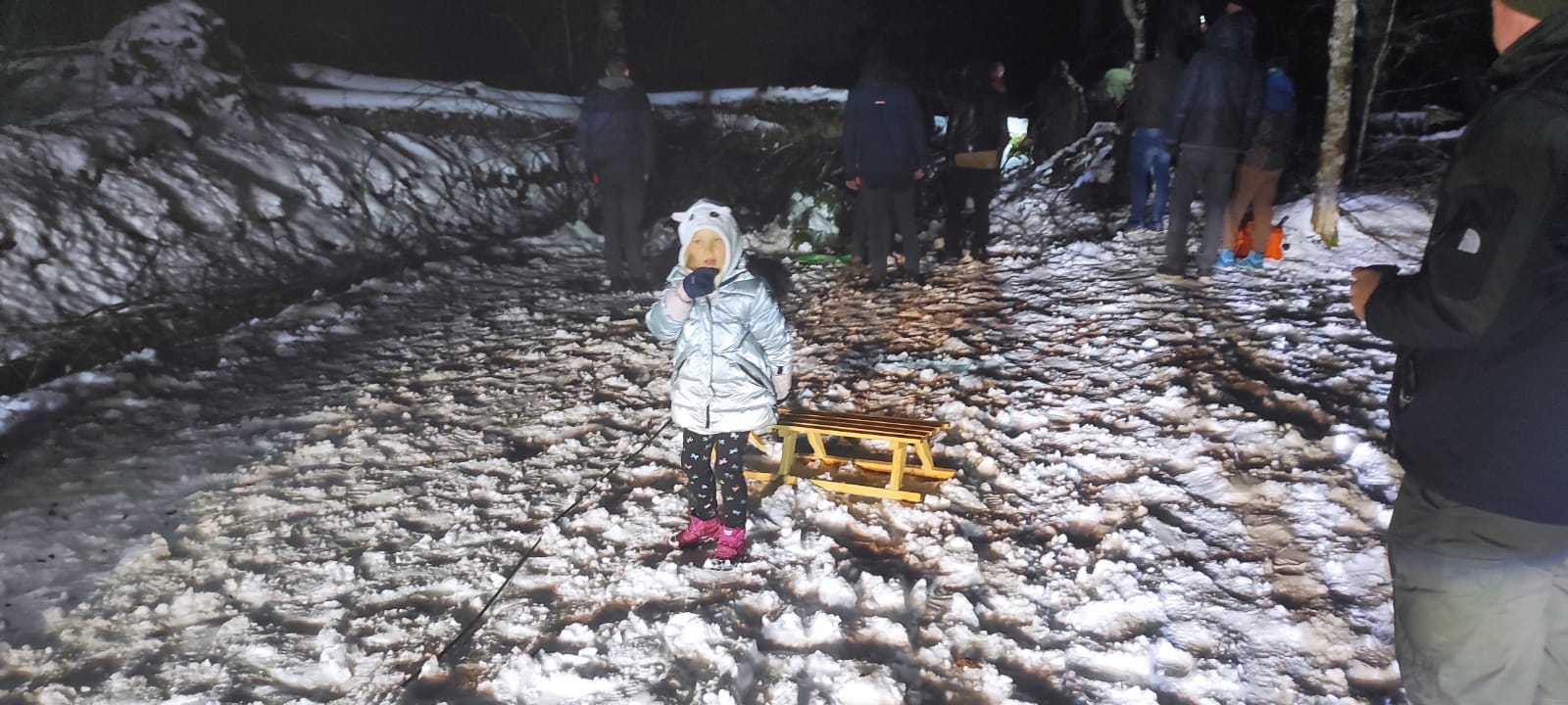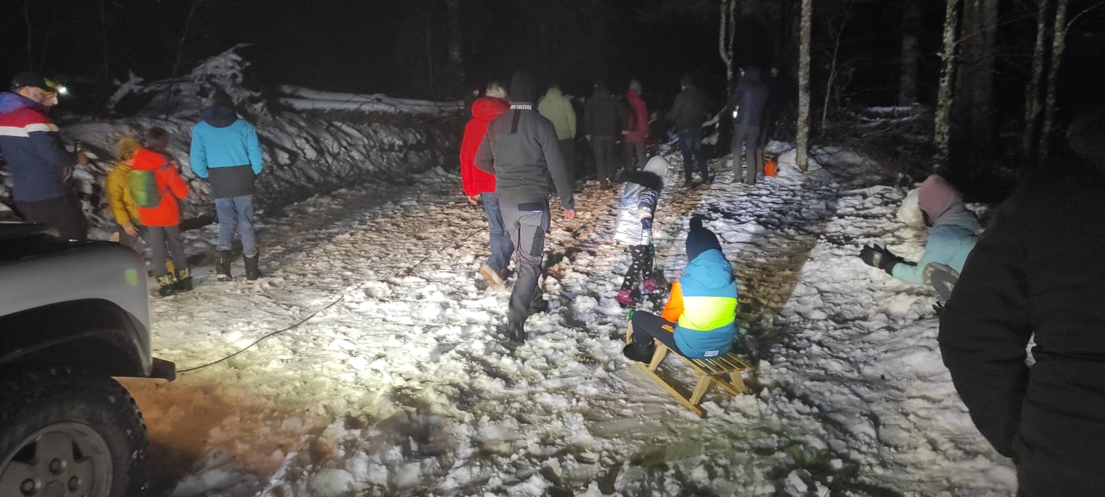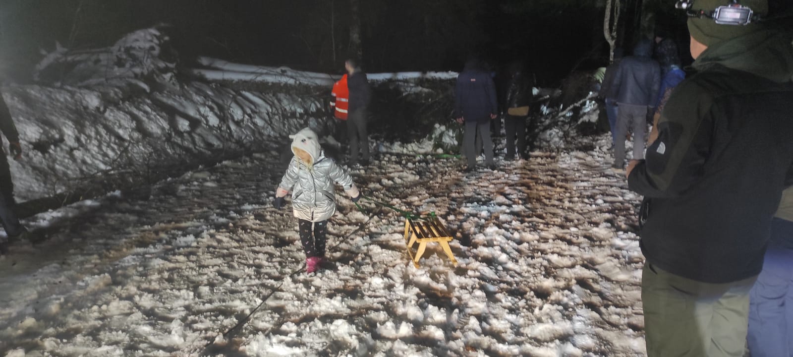 Nekoliko vozača bili su spremni na sve izazove Velebita pa su sa sobom na put ponijeli motorne pile. Sjekli su oborena stabla i uklanjali ih sa ceste. Među putnicima je bilo i majki s djecom. Kada su klinci vidjeli da se stariji hvataju ukoštac sa stablima, iz vozila su izvadili sanjke i načinili sanjkalište na obližnjim strminama. Oni bez sanjki prihvatili su pravljenja Snjegovića i tako se jedva rastali od snježnih radosti jer su odrasli za manje od sat vremena planinske ceste učinili prohodnima i krenulo se dalje na put.