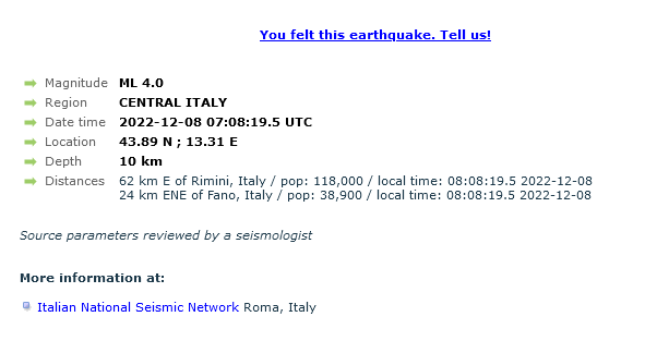Potres magnitude 4 zatresao je Italiju.