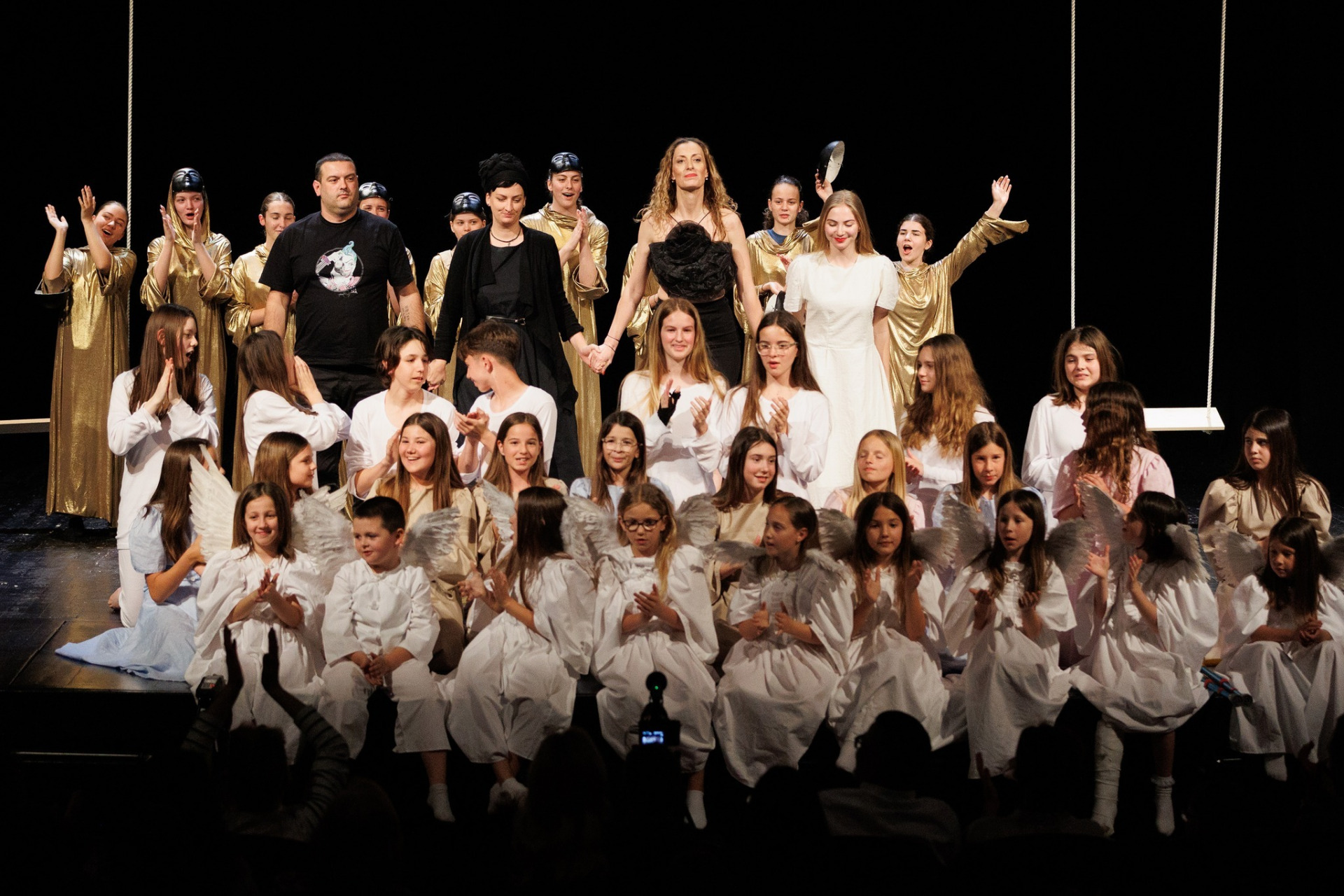 A na kraju, maleni polaznici igrali su simpatične anđela koji su se ljuljali, a uz zabavnu igru riječi, kao što je ponavljanje da se ne mogu skinuti (s ljuljačke u ovom slučaju) napravljena je poveznica s ostatkom predstave.