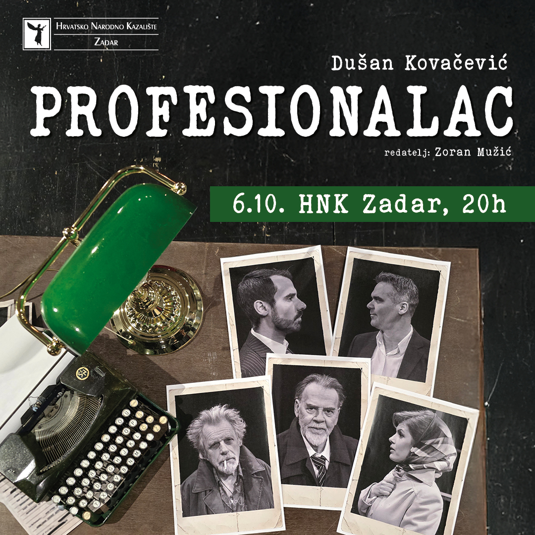 Ususret novoj kazališnoj sezoni u HNK Zadar u ponedjeljak, 6. listopada u 20 sati pogledajte predstavu PROFESIONALAC- kultno djelo Dušana Kovačevića, autora klasika Balkanski špijun i Maratonci trče počasni krug.