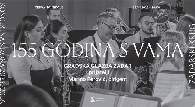 U nastavku mjeseca, 22. travnja u crkvi sv. Nikole, Gradska glazba Zadar obilježit će 155 godina djelovanja koncertom pod ravnanjem Marina Perovića. Program donosi presjek repertoara koji obuhvaća širok raspon stilova, od klasičnih autora do popularne glazbe, uz sudjelovanje brojnih gostiju i solista.