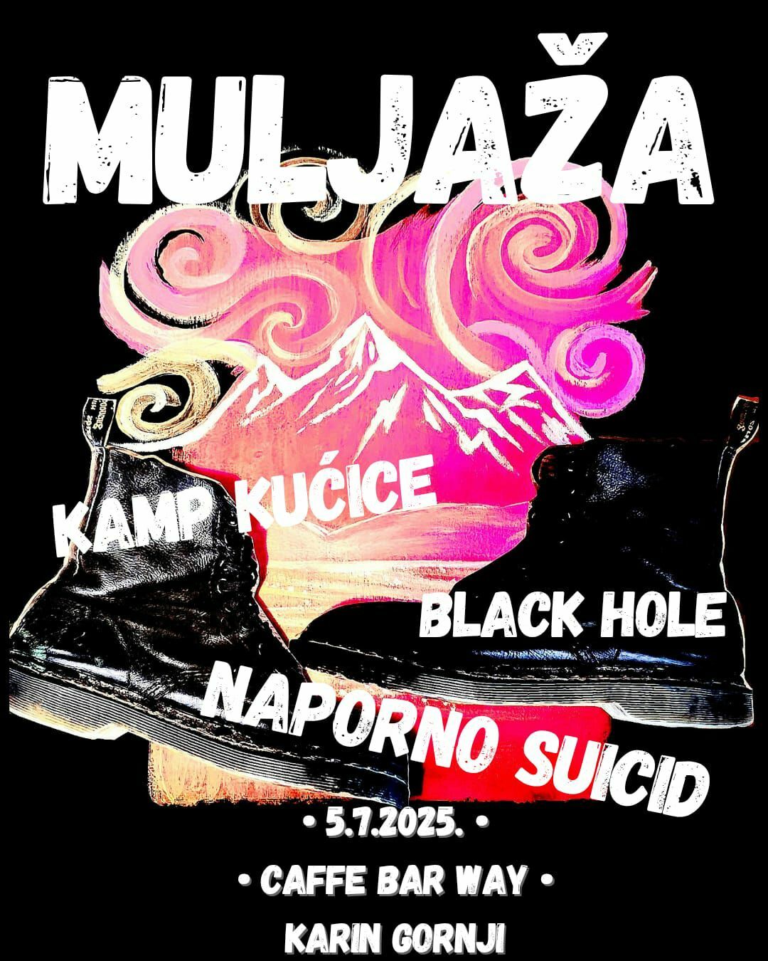Gornji Karin u subotu postaje središte alternativne kulture uz prvi marginal punk festival – »Muljaža«, koji će se održati u Caffe Baru WAY s početkom u 20 sati. Ulaz je besplatan, a publiku očekuju nastupi bendova Kamp kućice (Benkovac), Black Hole (Knin) i Naporno suicid (Split).
