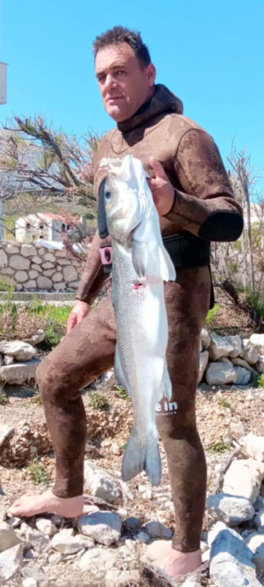 – Zaronim na par metara i nekoliko puta udaram kundakom po kamenu. Odjednom, ispred mene iz mutnog dolaze dva manja brancina. Opalim onako, niti ciljajući i pogodim jednog približno dva kila tako da sam već bio zadovoljan i s tim ulovom, nastavlja Đani svoju priču.