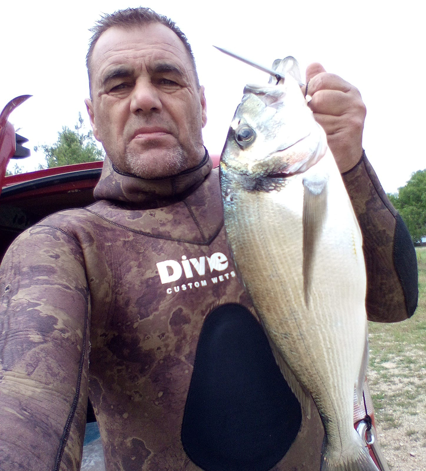 Bilo je oko podne kad sam šuljajući se lagano uz kraj primijetio dva lijepa primjerka oko kila kako se lagano okreću uz kamen na oko 5 metara od mene. Taman one pošle iza kamena pa ja zaronim i dok dolazim do tog kamena, jer sam ponirao prema dubljem, krajičkom oka na desnu stranu vidim veliku siluetu. Prava mrcina se lagano spušta prema dnu uz kamenje. Bila je na dva metra od mene kad sam se okrenuo i pravo za njom. Počela je malo ubrzavati i kad sam vidio da bi mi mogla izaći van dometa, opalim pa što bude. A bilo je da sam je pogodio točno odozgo kroz glavu tako da joj je pero izašlo kroz usta, prepričava dalje Đani.