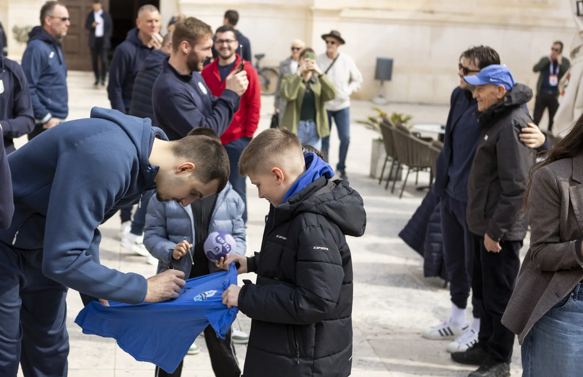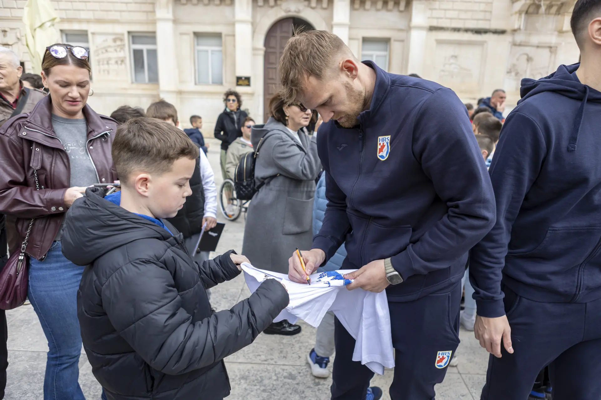 Sunčan dan i lagana bura koja je donosila osjet hladnoće i podsjetnik da ipak još uvijek nije stiglo ljeto, prolijevali su se Narodnim trgom, koji je od prijepodneva bio u znaku rukometa. A onda, točno u 11 sati, od mosta je krenula žarko očekivana povorka hrvatskih rukometnih reprezentativaca prema Trgu, koji je bio ugodno ispunjen ponajprije djecom koja su čekala priliku vidjeti svoje rukometne heroje. U vrlo dobrom raspoloženju stigli su reprezentativci pred kojima su dva prijateljska susreta protiv Švicarske, pripremljeni za bezbroj fotografija, autograma i lijepih riječi, kako djece tako i brojnih starijih sugrađana. Za očekivati je kako će svi oni s Trga, ali i još velik broj ostalih, stići u četvrtak na Višnjik od 17 sati, kada kreće utakmica protiv Švicaraca, jer koliko se može čuti – karata gotovo da više i nema.