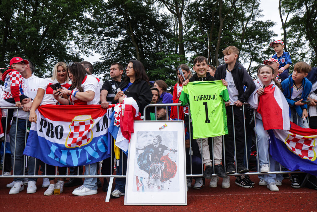 Atmosfera na treningu je bila sjajna. Igrači su marljivo nizali vježbe, a navijači se sjajno zabavljali izvikujući imena naših igrača. Najviše povika je naravno, upućeno kapetanu Luki Modriću, a nakon njega i Jošku Gvardiol. Atmosferu nije pokvarilo niti lagana kiša i prohladno vrijeme.