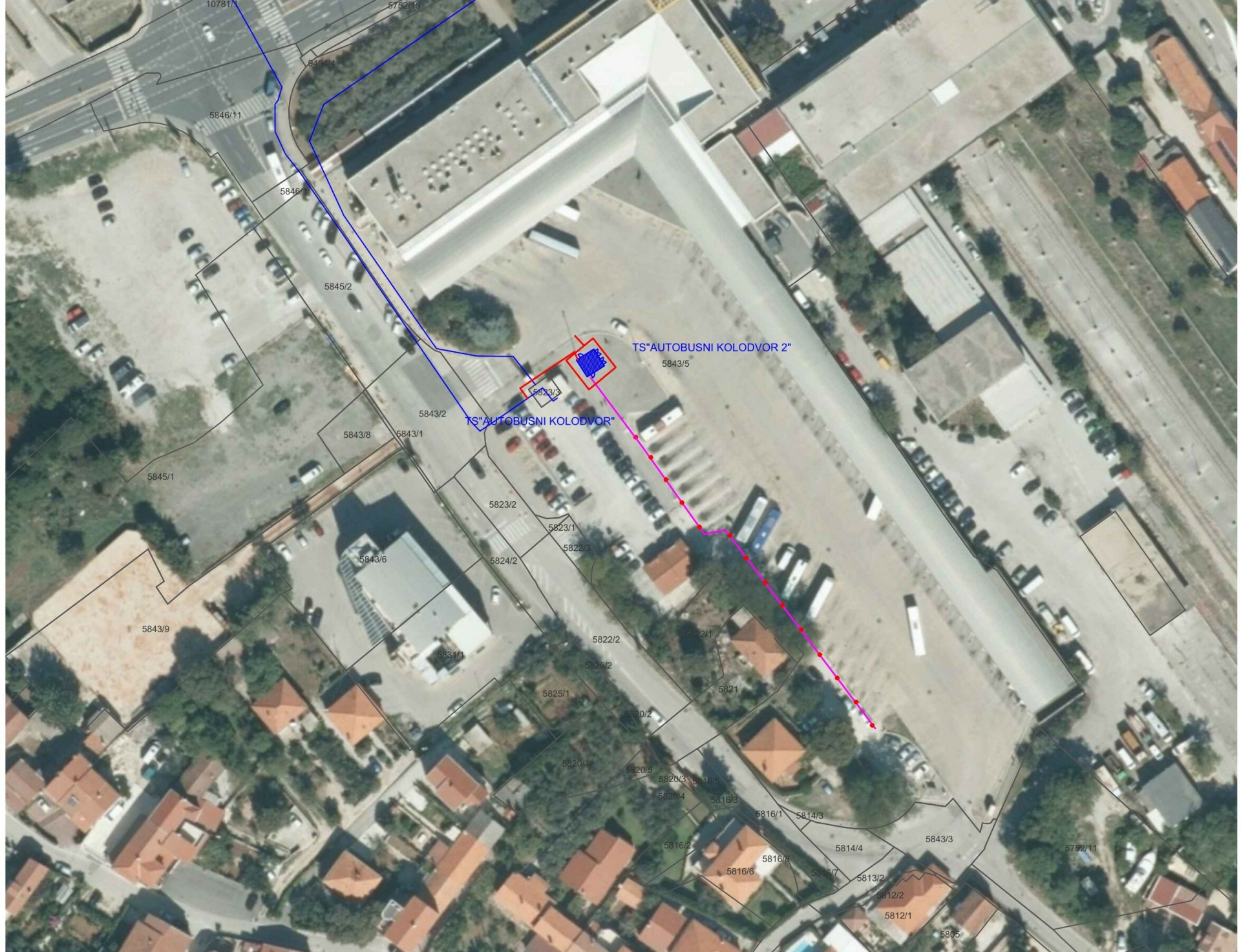 Pristup trafostanici ostvarivat će se direktno s javne prometnice koja se nalazi s južne strane kolodvora, Ulice kralja Tvrtka. Trafostanica se ne priključuje na komunalnu infrastrukturu. Minimalni broj priključnih mjesta je 14 uz minimalnu snagu svakog priključnog mjesta od 150 kW i tip priključka za punjenje CCS2 (kombinirani sustav punjenja 2), radi se o službenom EU standardu za električna vozila, uključujući autobuse koji zahtijevaju velike kapacitete. Uz 14 priključnih mjesta isporučit će se dva prijenosna punjača uz minimalnu snagu svakog punjača od 35 kW i tip priključka za punjenje CCS2.