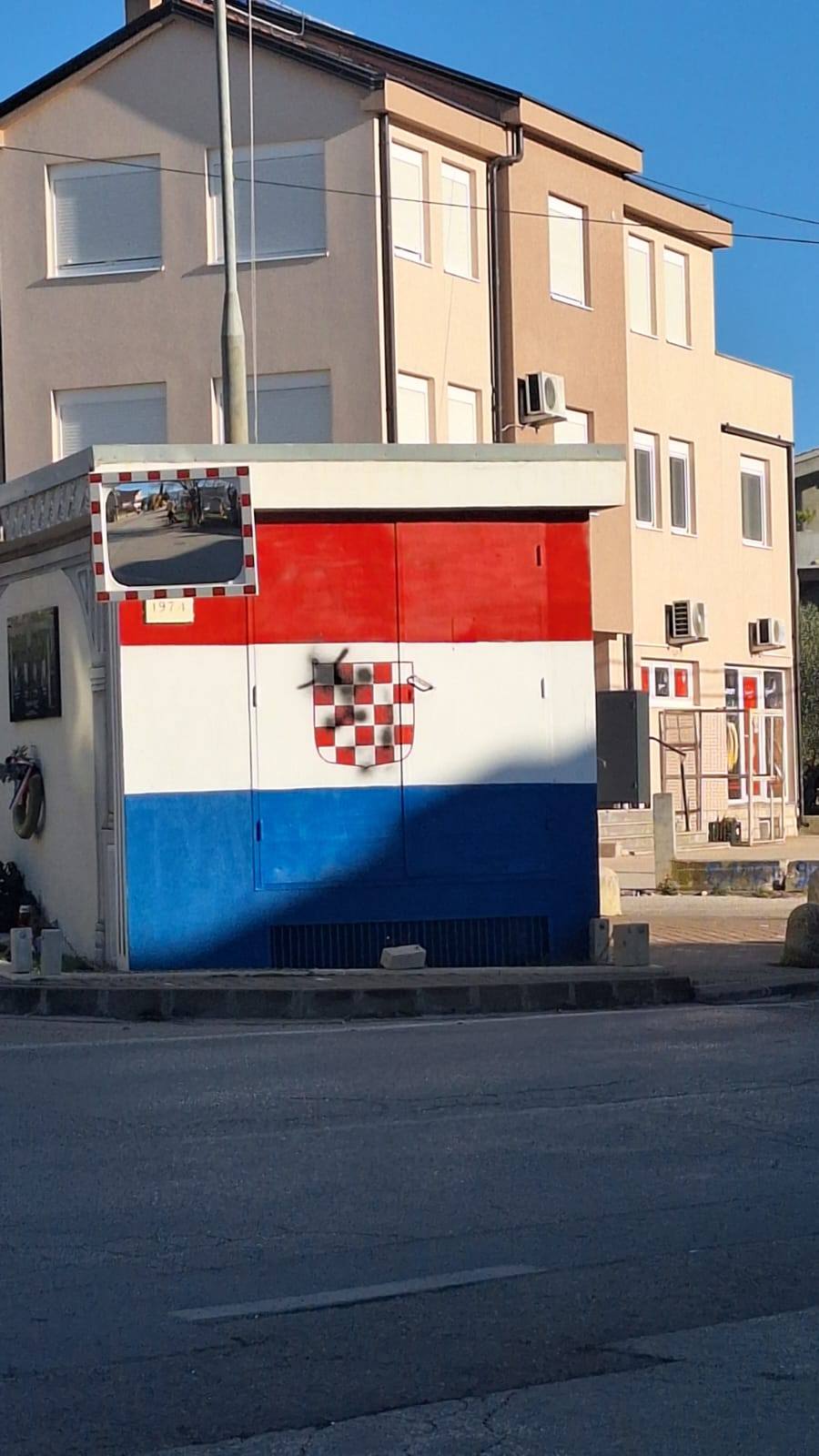 Nepoznata osoba za blagdane se oboružala crnim sprejom te prešarala prva bijela polja na hrvatskom grbu na nekoliko grafita na Plovaniji, uključujući i grafit na trafostanici na vrhu Ulice Tesle, kako je objavljeno na Facebook grupi Moja Plovanija.
