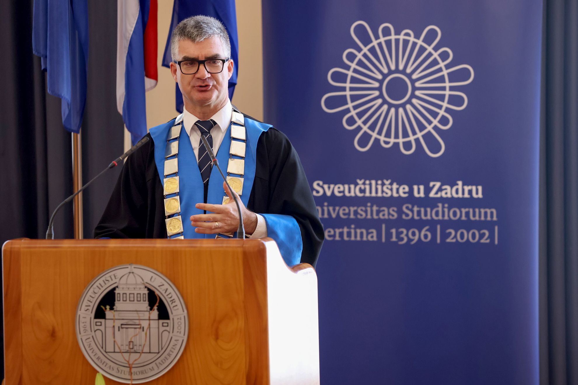 Istaknuo je kako se obilježavanje Dana Sveučilišta u Zadru zbiva u ozračju dviju velikih obljetnica, 630 godina od osnutka prve akademske zajednice u ovom dijelu Europe te 70. obljetnice početka djelovanja Filozofskog fakulteta u Zadru.