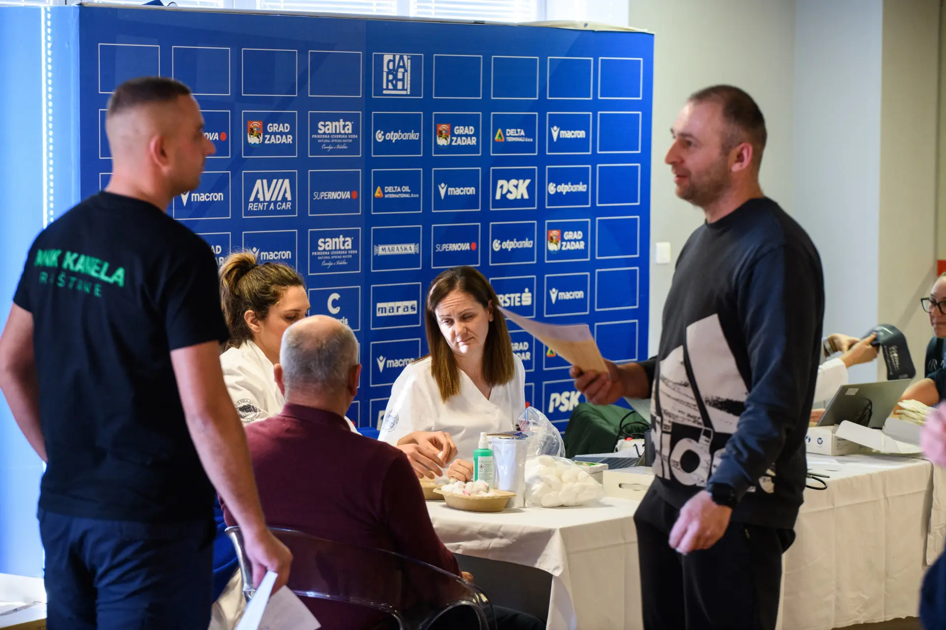 Tako su danas organizatori na čelu s Franom Volpijem Kobalom i Ivanom Jurićem odlučili u sklopu finalnog dana natjecanja provesti veliku akciju darivanja krvi u prostoru press centra dvorane Krešimira Ćosića.