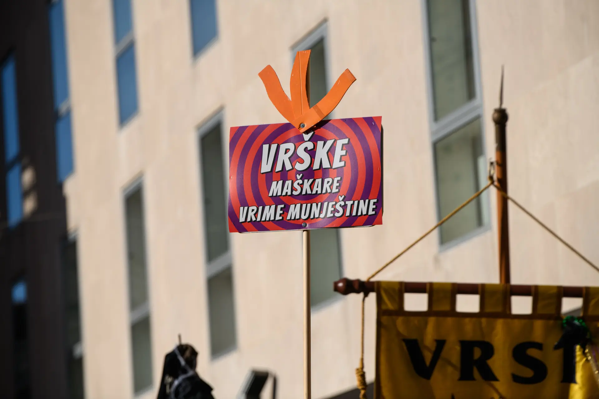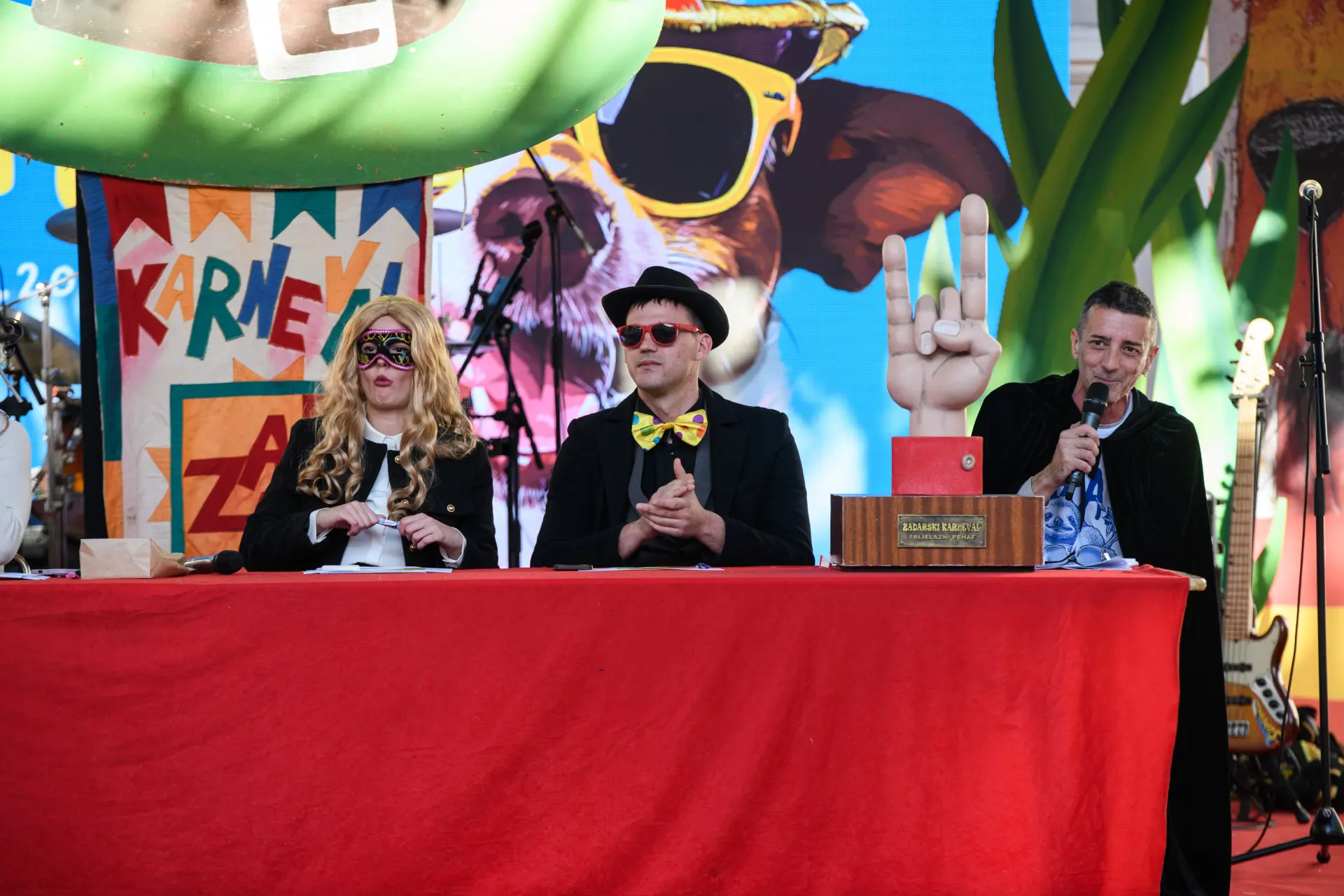 Na trgu je naše grupe dočekala zabava uz svirku zadarske grupe Vista, a uslijedio je i najiščekivaniji trenutak – odabir tri najbolje grupne maske. Prvo mjesto osvojile su Vrške maškare s temom “Vrime munještine”, drugo mjesto pripalo je Firmi Krstić za “Ko to tamo peva”, a treće mjesto uzeo je KUD Mrtovnjak s temom “Škura tramontana”.