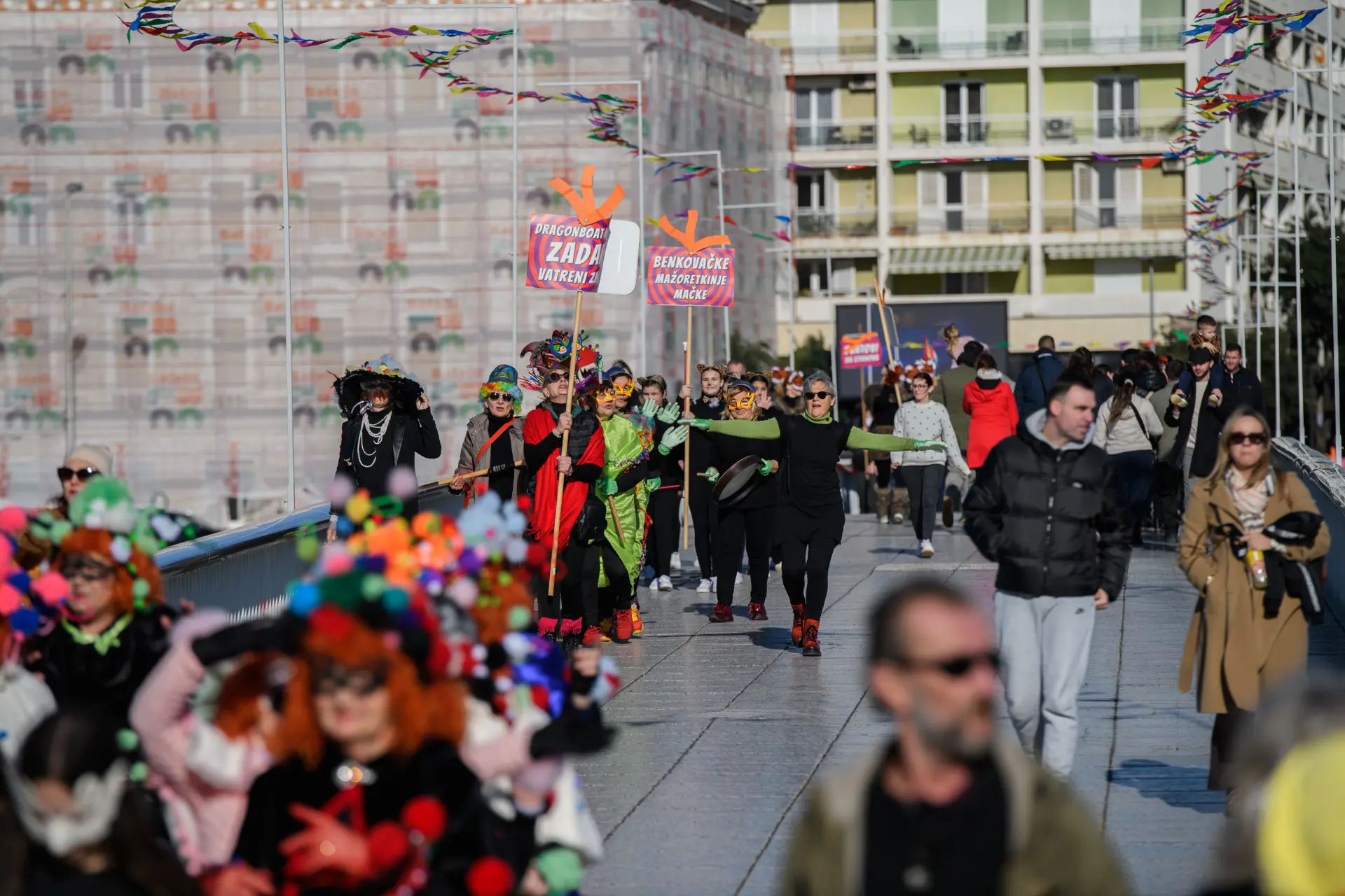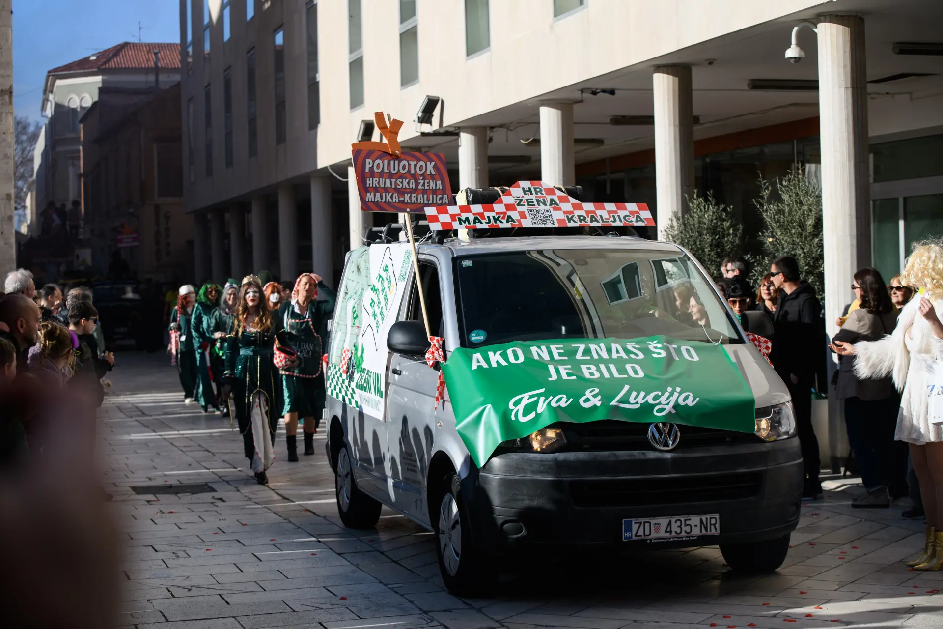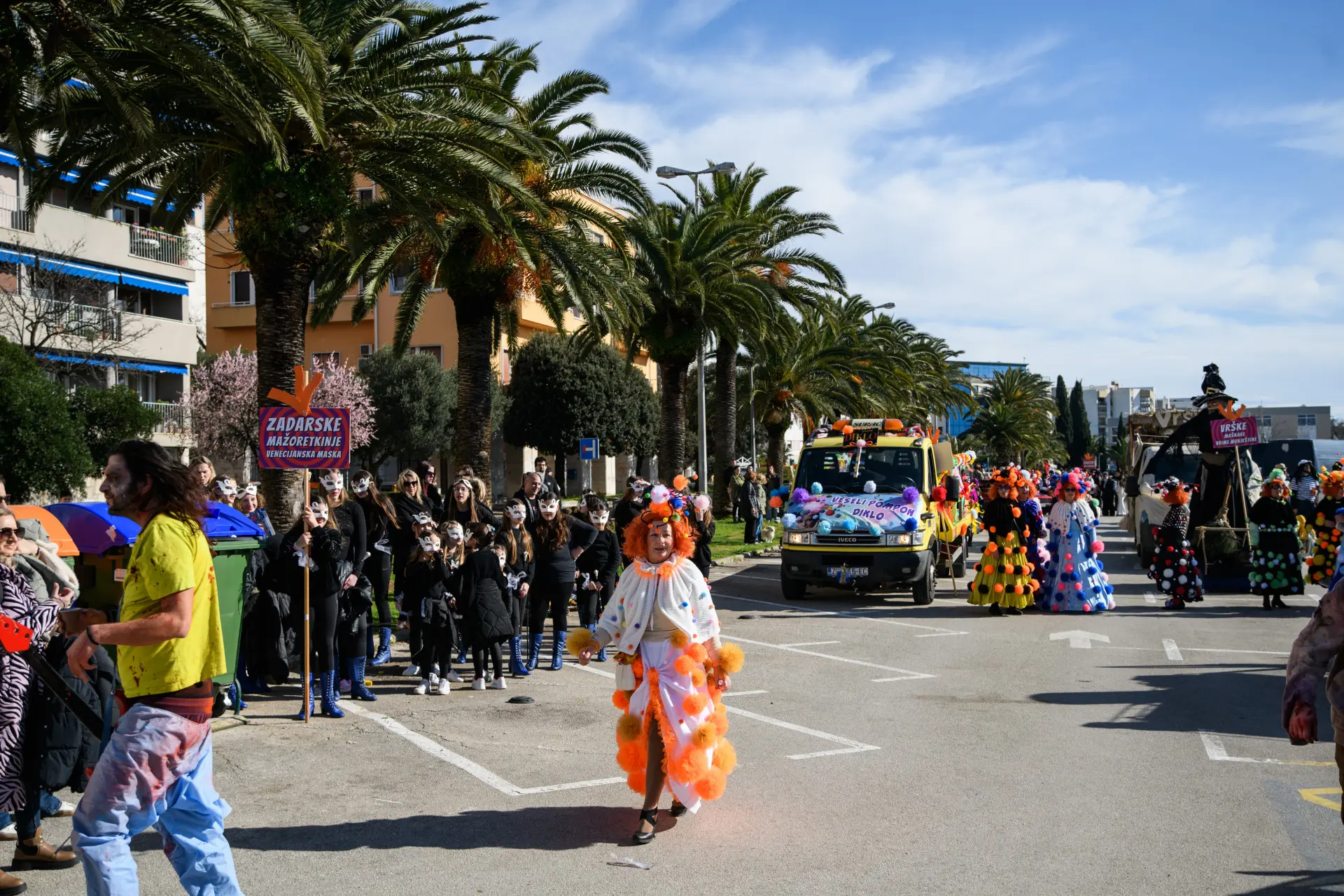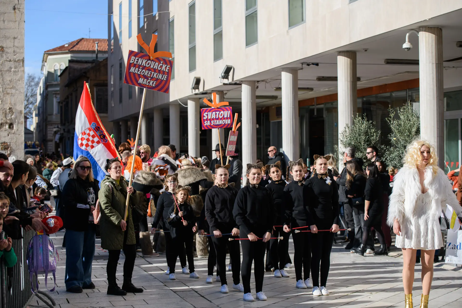 Karnevalska povorka je tako i ove godine bila pravi pokazatelj maštovitosti. Skupine koje su mjesecima osmišljavale maske za jučerašnji dan, od 13 sati su se okupile na Branimiru odakle je povorka krenula preko Mosta i Foruma do Narodnog trga, gdje su ih čekali brojni građani kojima su predstavili svoje kreacije i karnevalsku točku. Iako je bilo prijavljeno 15 skupina, na kraju ih je 13 nastupilo na zadarskom karnevalu.