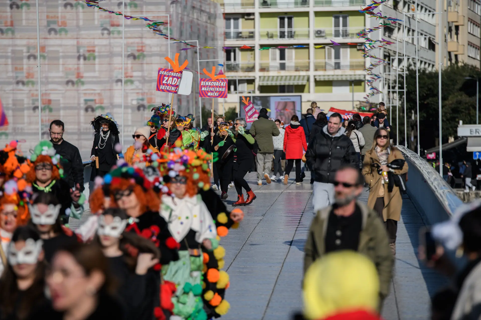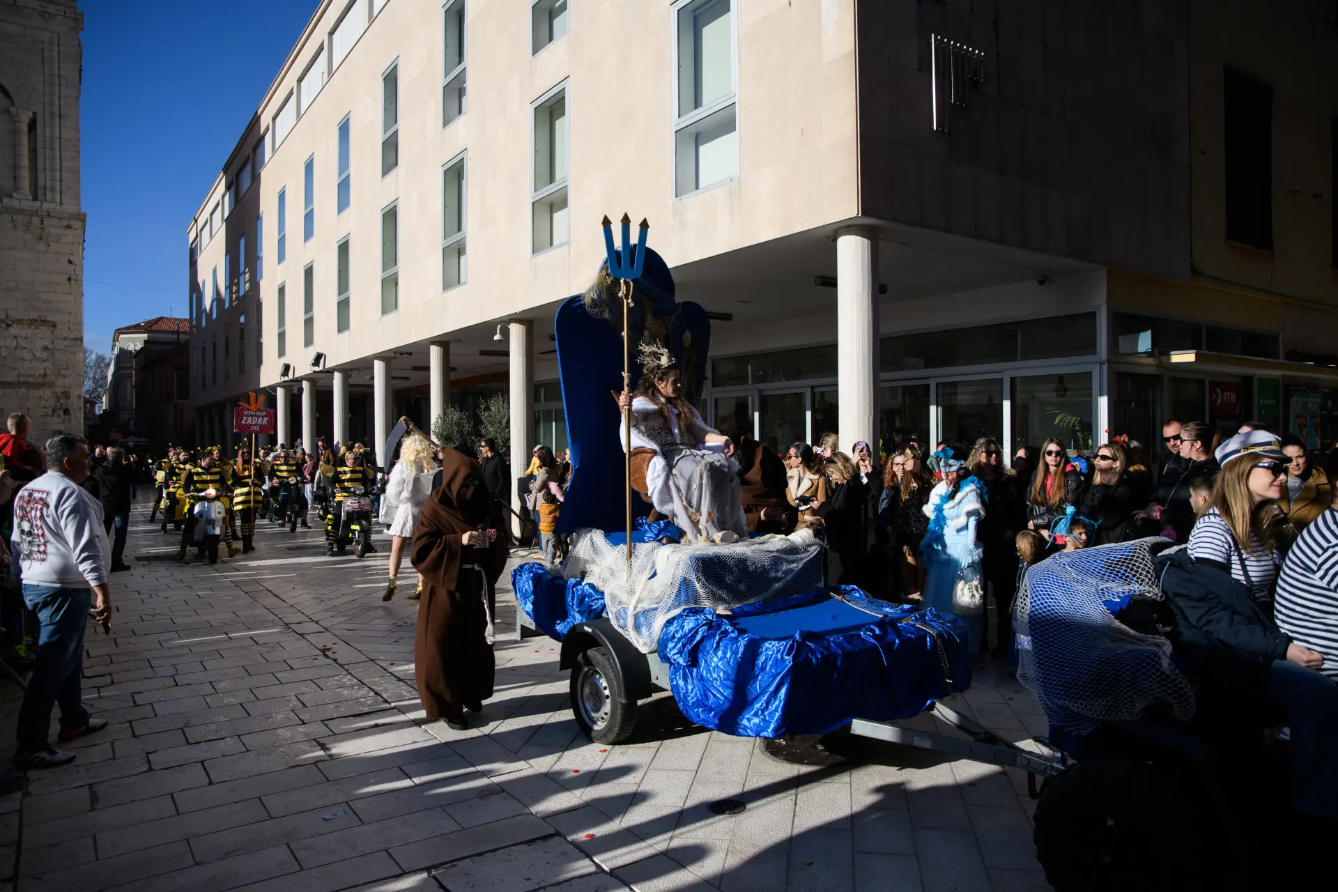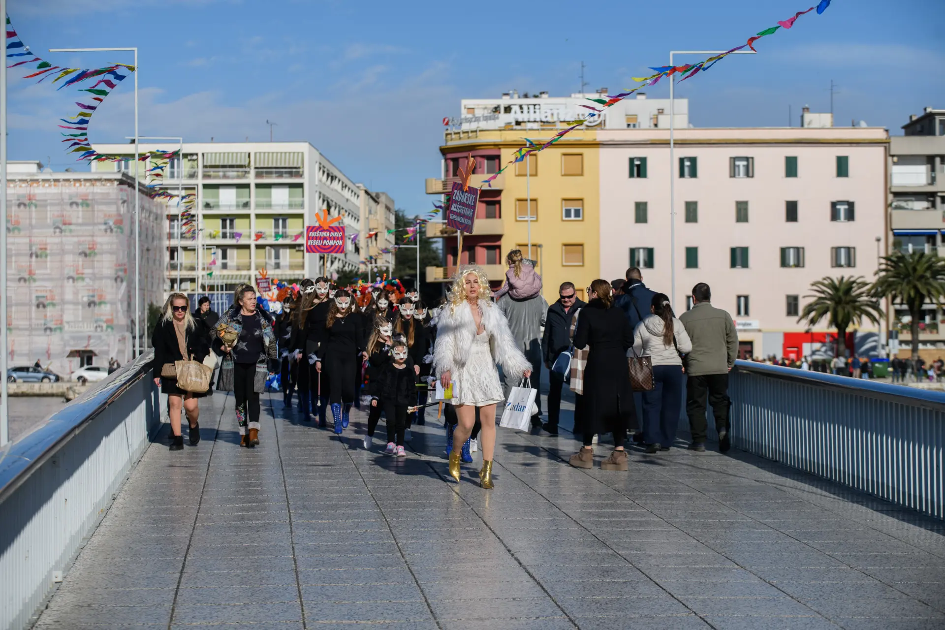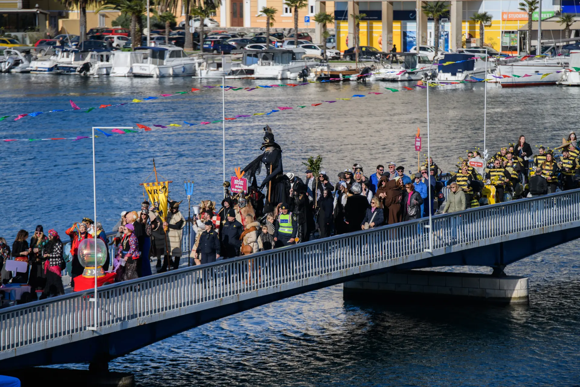 Karnevalska povorka je tako i ove godine bila pravi pokazatelj maštovitosti. Skupine koje su mjesecima osmišljavale maske za jučerašnji dan, od 13 sati su se okupile na Branimiru odakle je povorka krenula preko Mosta i Foruma do Narodnog trga, gdje su ih čekali brojni građani kojima su predstavili svoje kreacije i karnevalsku točku. Iako je bilo prijavljeno 15 skupina, na kraju ih je 13 nastupilo na zadarskom karnevalu.