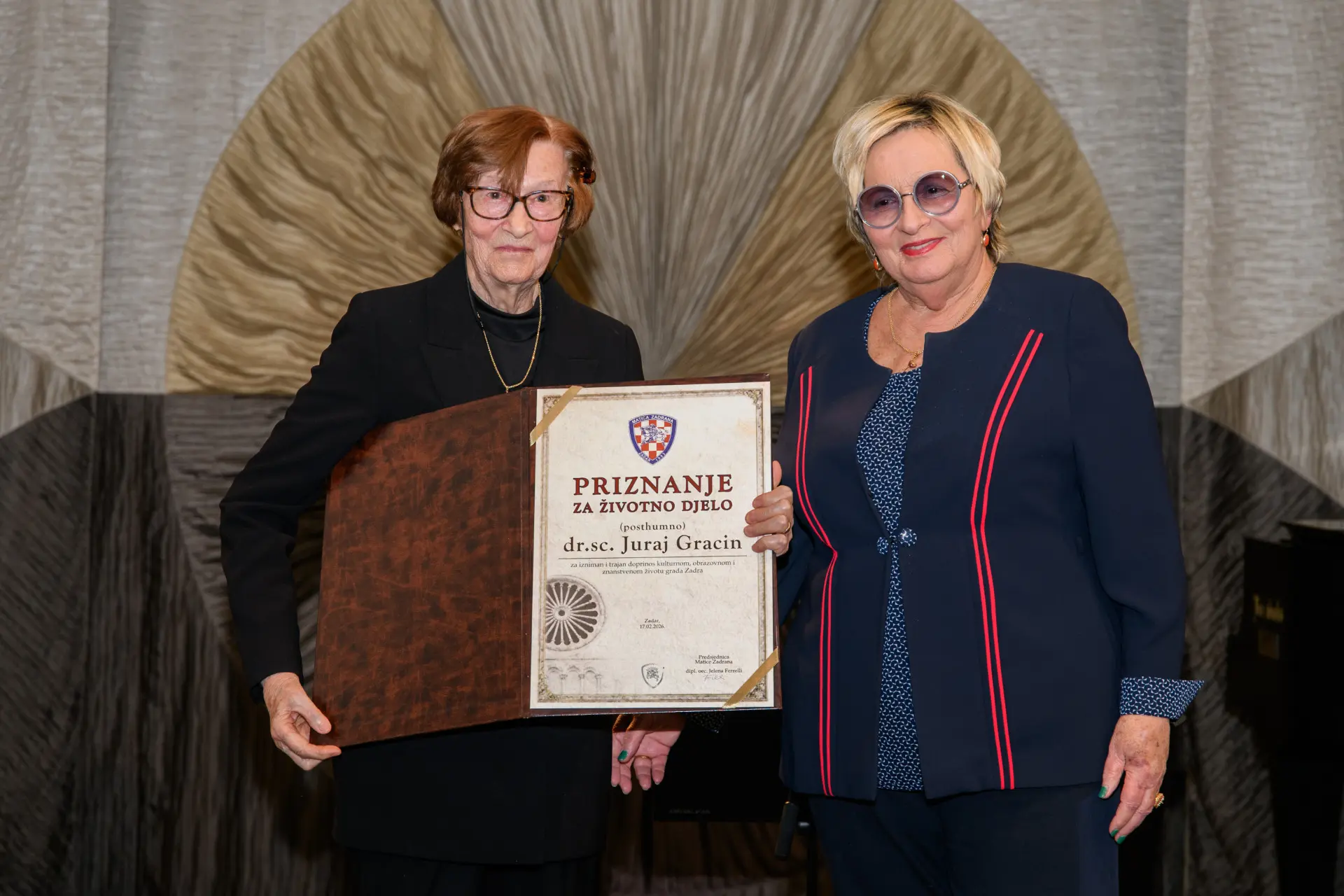 Na posljetku, posthumno su priznanjima nagrađeni trud, rad, znanje i poštovanje koje su Zadrani gajili prema njima. Priznanje za životno je djelo tako posthumno dodijeljeno profesoru Juraju Gracinu, te liječniku Ivi Arneriju. Gracin i Arneri, svaki na svoj način, kroz znanstveni i liječnički poziv pomogli su oblikovati Zadar. Svaki je imao svoj istančan odnos prema Zadranima i povijesti grada koji je bio dio njihova identiteta i životnog poslanja.