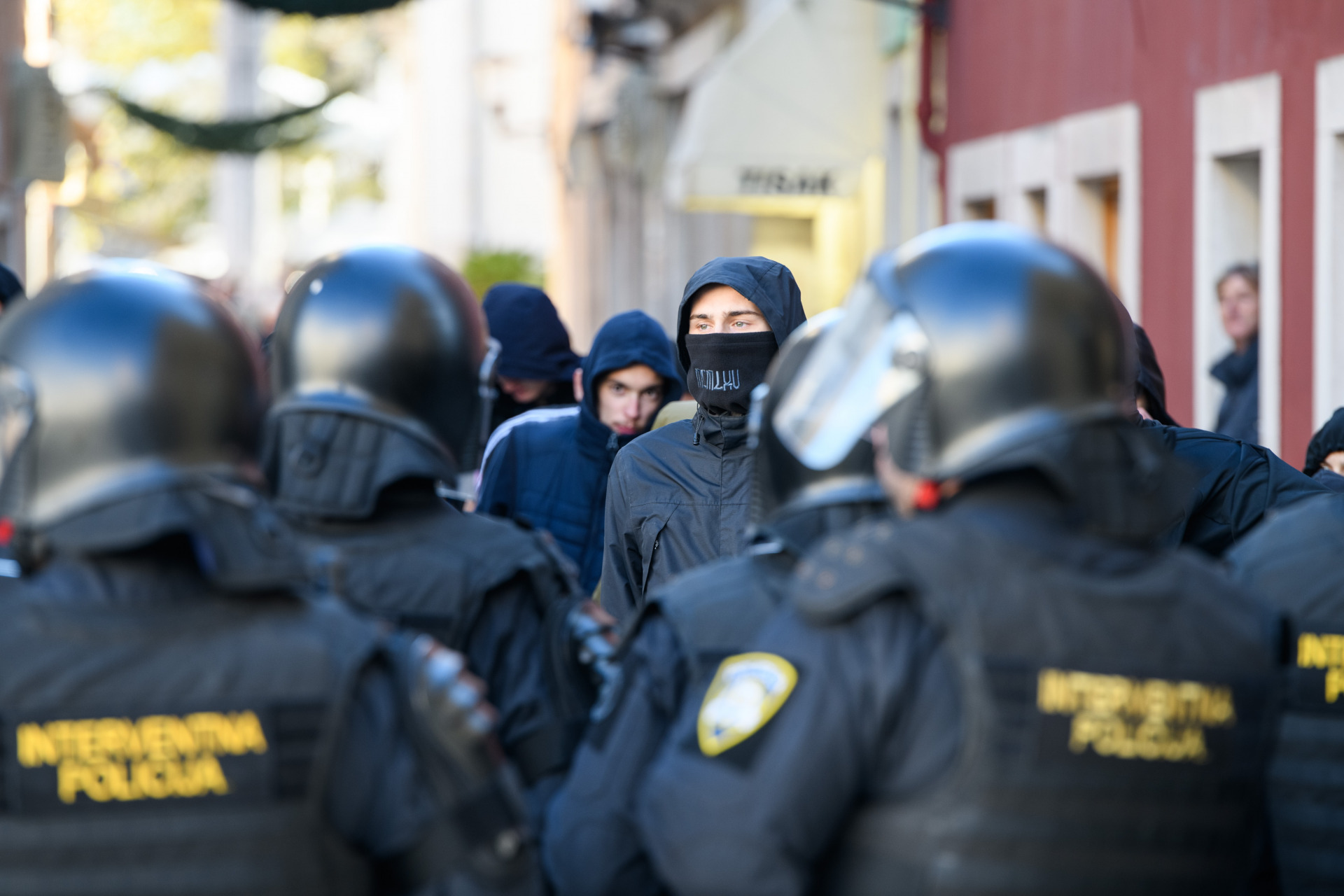 Prema izjavama svjedoka, tridesetak mlađih osoba, većinom maskiranih lica, skandirala je razne poruke i upućivala psovke. Policija ih je zadržala na distanci od sudionika skupa te ih potisnula prema Ciottinoj ulici.