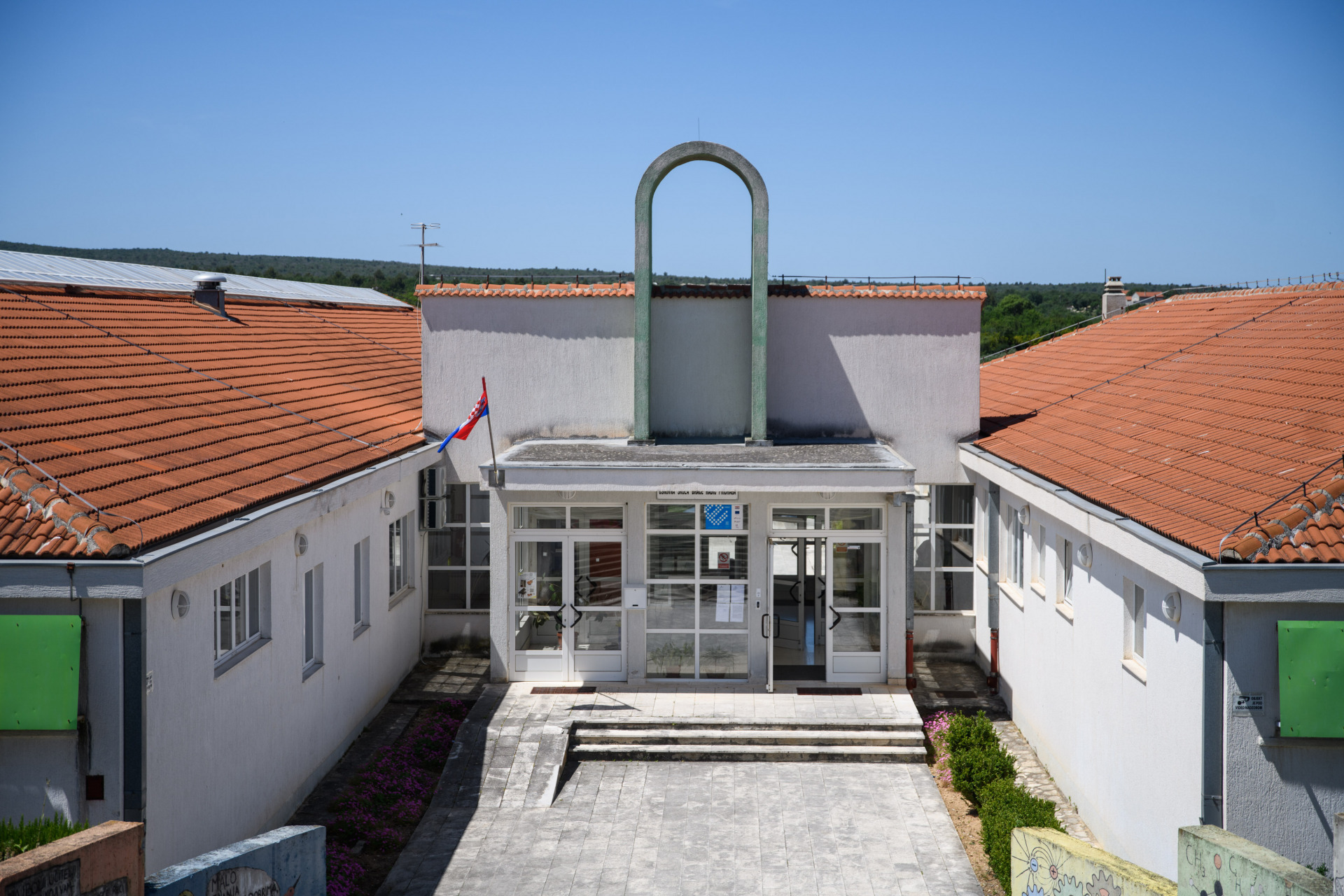 A jedan od pokazatelja napretka i ulaganje u one na kojima svijet ostaje svakako je OŠ Vladimira Nazora Škabrnja, velika, lijepo i moderno uređena škola s igralištem koja je ovog dana poslužila kao biralište.