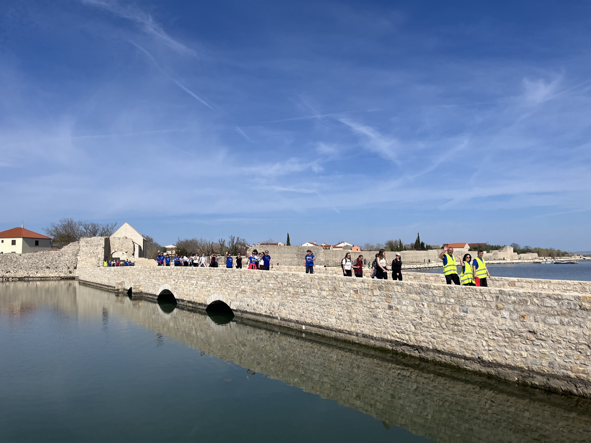 Drugi dan započeo je svetom misom u Ninu, uz raspjevani župni zbor i snažne riječi podrške župnika prema hodočasnicima kojima je udijelio blagoslov sv Jakova. Nakon doručka, hodočasnici su nastavili put pored kipa Grgura Ninskog i najmanje katedrale na svijetu, preko kamenog mosta prema Zukvama.