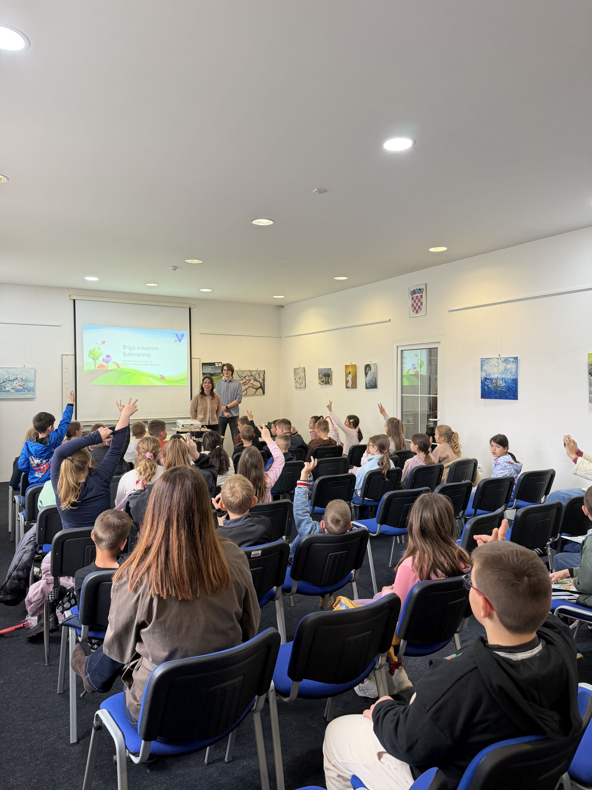 Događaj je okupio brojne osnovnoškolce koji su s velikim interesom sudjelovali u interaktivnom predavanju koje je vodio veterinar Branimir Šuto. Kroz zanimljiv i djeci prilagođen pristup sudionici su imali priliku naučiti osnovne, ali iznimno važne informacije o odgovornom vlasništvu nad kućnim ljubimcima – uključujući pravilnu prehranu, higijenu, zdravstvenu skrb te važnost pažnje i brige o životinjama.