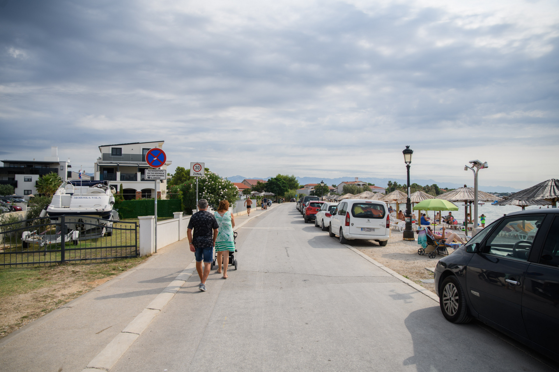 Pretpostavljam kako se radi o hrvatskim državljanima koji su na odmoru na Viru. Ovi ljudi su svojim autom prepriječili prolaz pljačkašima, a kad su pljačkaši shvatili da su zatečeni na djelu, u panici su upalili svoj auto te su krenuli bježati. Budući da je izlaz s parkirališta uzak, nisu imali kuda, tako da su krenuli u smjeru našeg štanda.