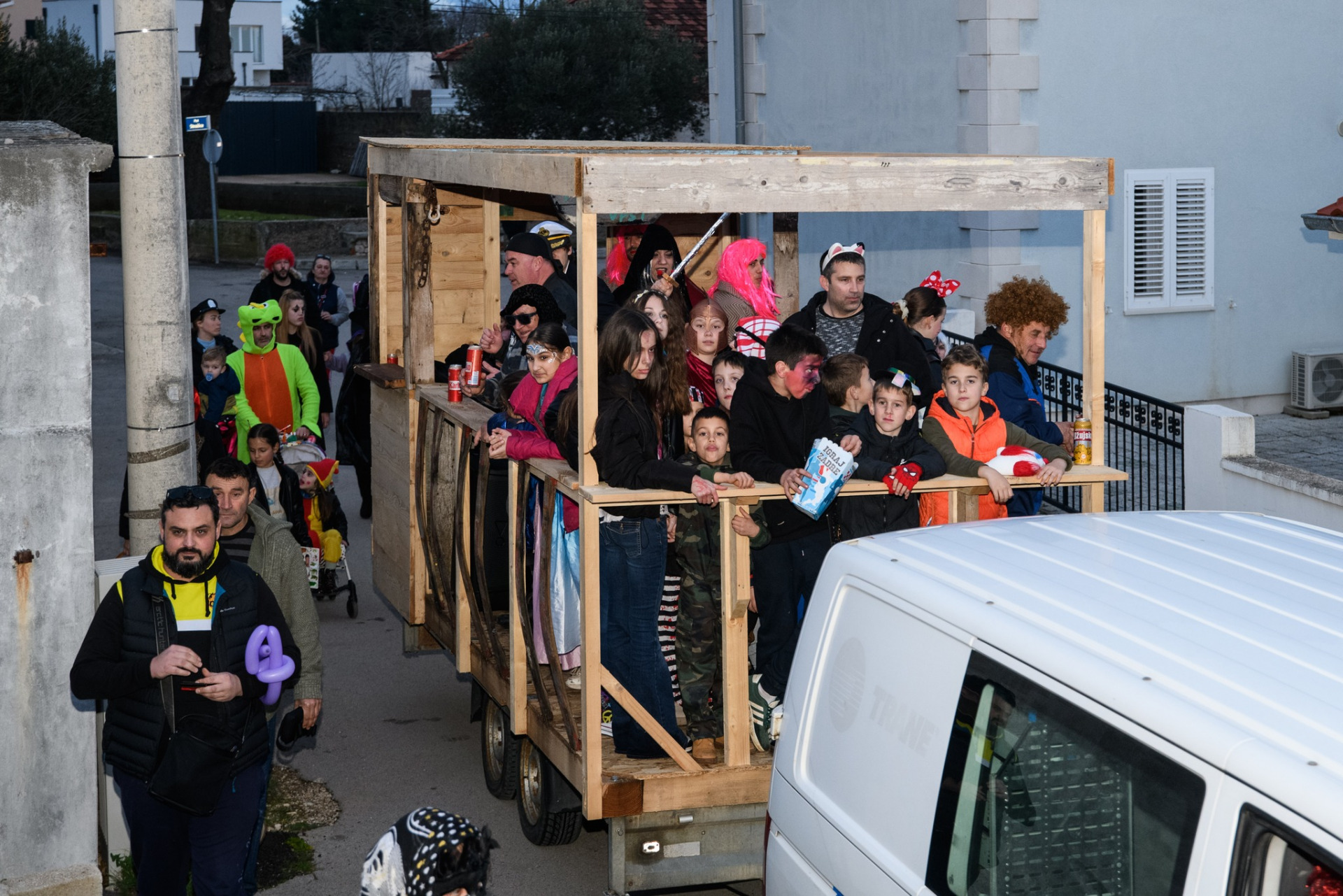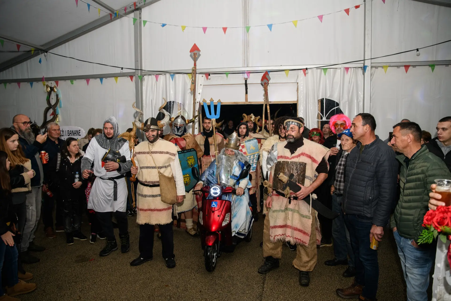 U veseloj karnevalskoj povorci, uz domaćine, sudjelovale su i maškarane grupe iz Zadra, Vira, Nina, Trogira i drugih mjesta, a program su dodatno obogatile zadarske i virske mažoretkinje, unoseći poseban ritam, razigranost i vizualni šarm. Posebnu pažnju privukao je izbor najboljih maski – prvo mjesto za grupnu masku osvojila je skupina s Vira, predvođena Goranom Vickovićem, drugo mjesto pripalo je ninskoj udruzi Aenona s domišljatom maskom lisica, dok je treće mjesto otišlo u Trogir, u ruke vesele, mladolike i raspjevane ekipe.
