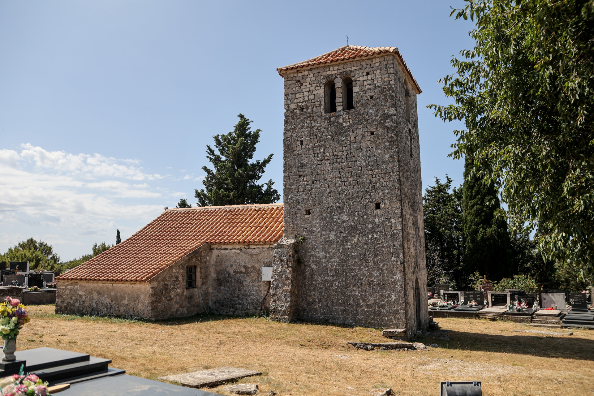 Sve to ispričali su nam otvoreni i srdačni mještani, a obilazak smo započeli od župne crkve sv. Nikole Tavelića (gdje dolazi služiti svećenik iz Stankovaca) izgrađene 1970./71. god., prema nacrtu arh. Ante Baraća, na temeljima započete velike kamene crkve sv. Ivana Krstitelja i sv. Terezije od Maloga Isusa iz 1938. godine. Iznad te crkve je crkva sv. Ivana Krstitelja, romanička građevina iz XI. do XII. stoljeća, na čijem je pročelju zvonik u obliku masivne kule i zahvaća čitavu širinu crkve. Ta je crkva pod državnom zaštitom, a obnovljena je 2007. godine zahvaljujući potpori Ministarstva kulture RH.