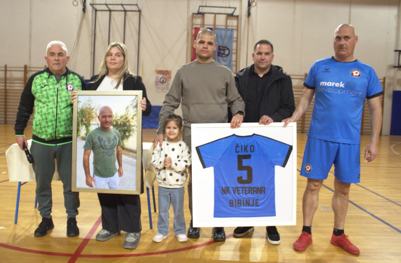 Čikinoj kćeri i sinu, Luciji i Andriji, organizatori uručili Čikovu sliku i uokvireni dres NK-a Bibinje